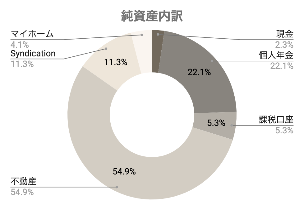 投資用の住宅ローン負債(良い借金)は全て家賃収入で賄えています。あまりレバレッジを掛けすぎないようにLoan to Valueを低めに抑えて責めすぎない投資を心がけています。