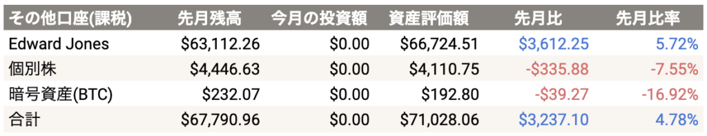 今月も金融資産が先月に比べて良い成績でした。