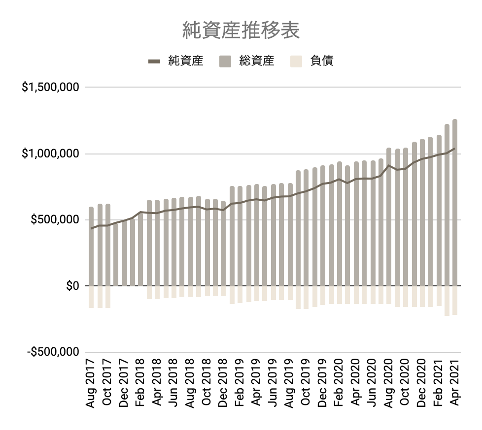コツコツ資産形成&運用してきたことで、FIREムーブメント開始時の2017年から$606,078の純資産を増やすことが出来ています。