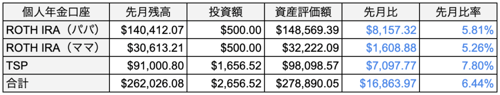 我が家のFIナンバーは1.5ミリオンドルなのであと$460,000増加を目指して今後も気を引き締めて頑張りたいと思います!