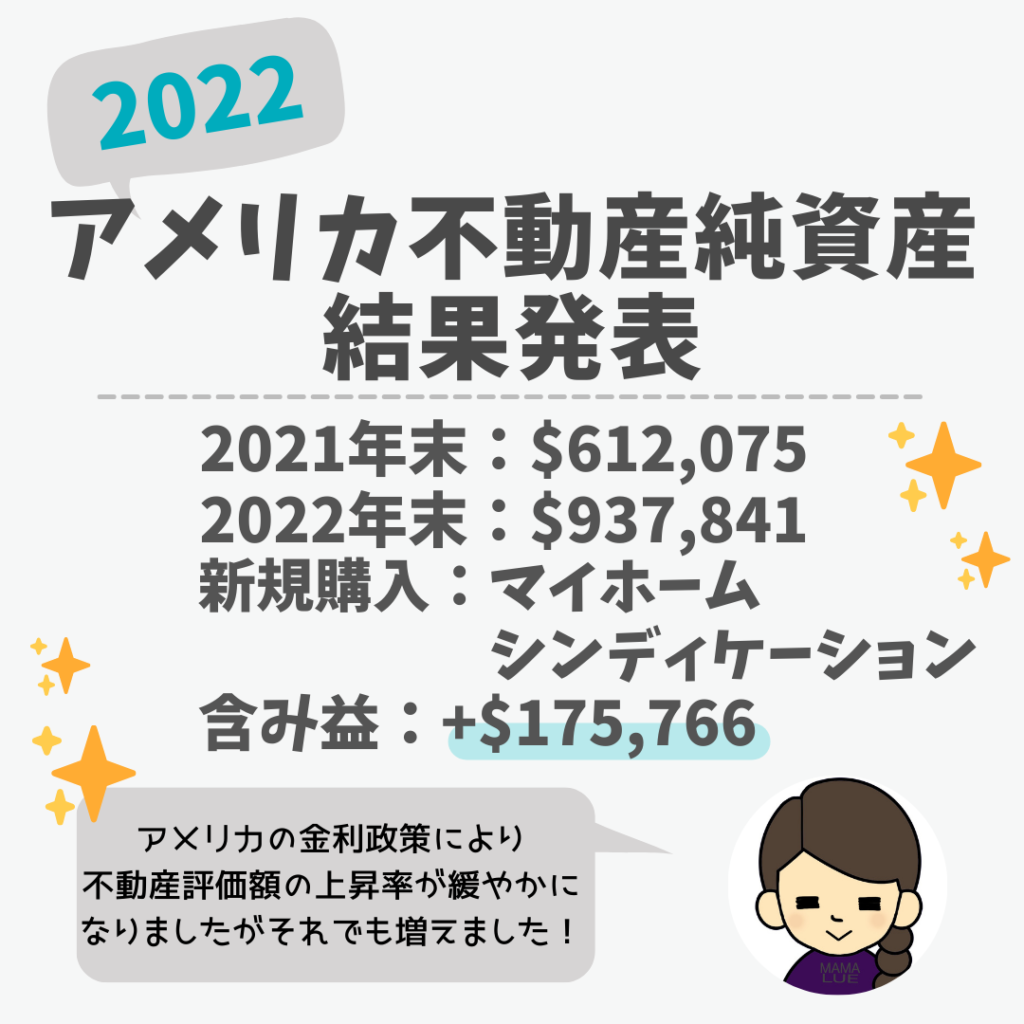 ところがアメリカの利上げの影響で不動産の売買が鈍化しており中々購入者が現れません。来年内には売却してストレスフリーに戻れることを願うばかりです。