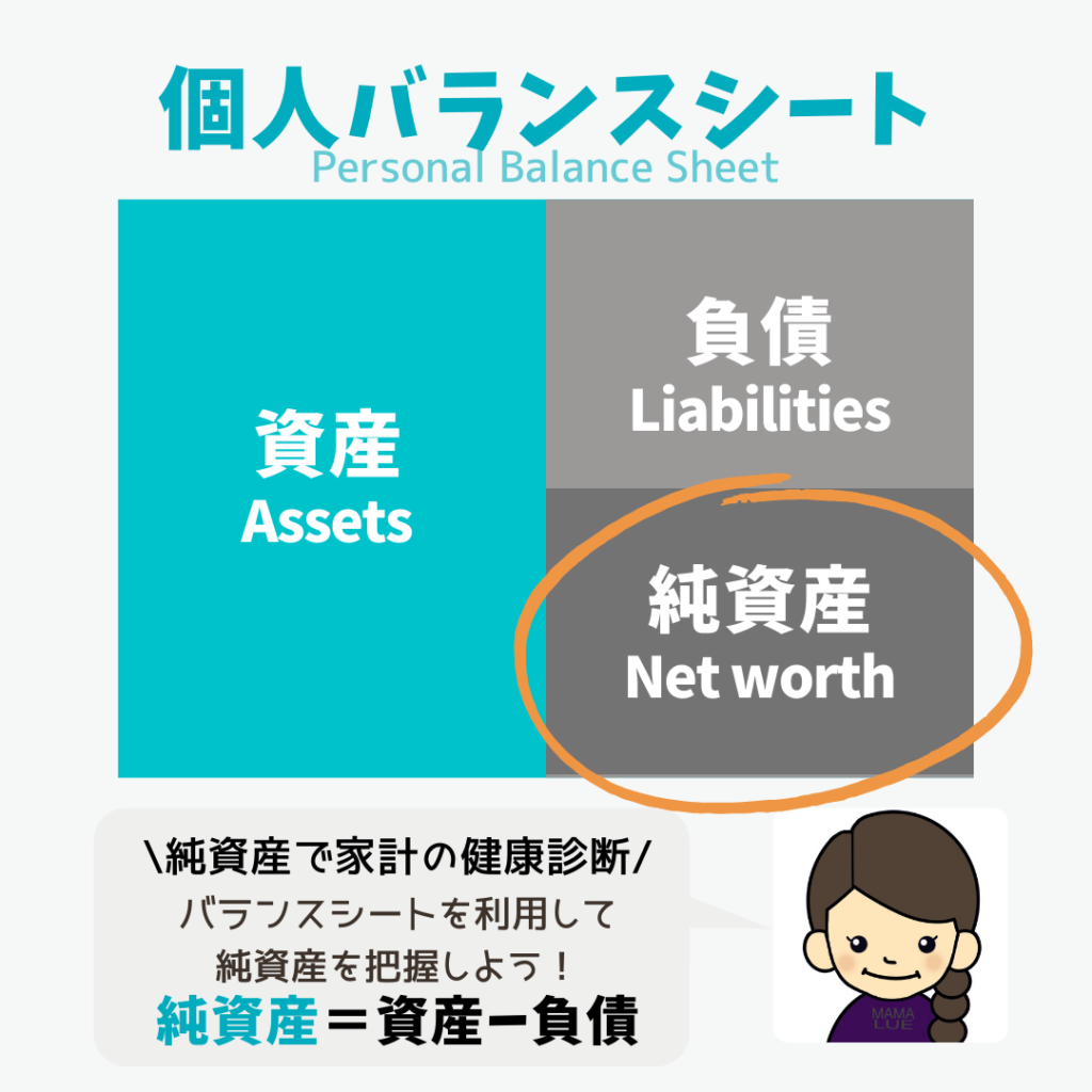 個人資産の成績表(バランスシート)、純資産の計算方法は下記の過去記事を参考にしてみてください。
