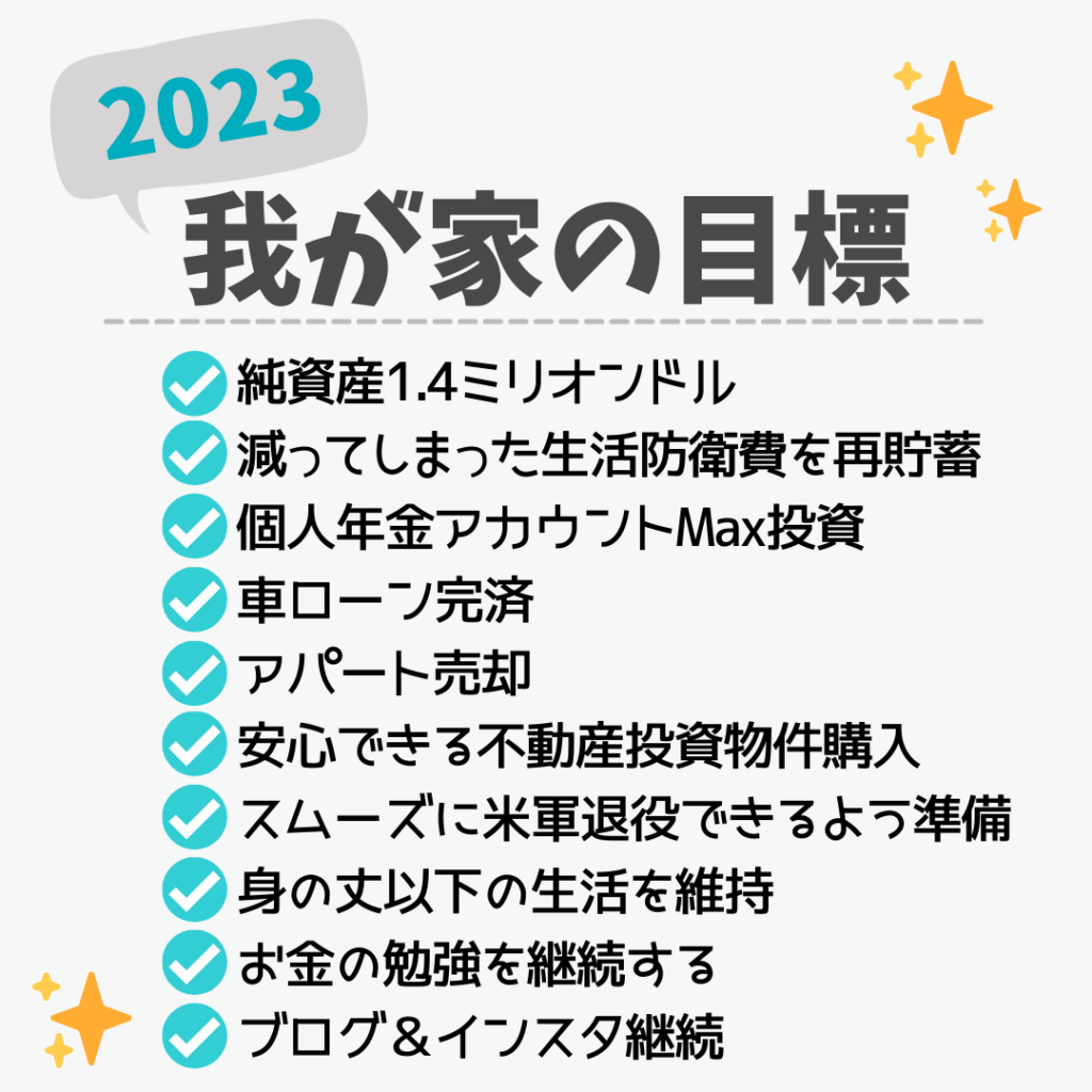 さて2023年はパパの米軍リタイアやFinancial Independence(FI)達成など、我が家にとって大きな変化の年となりました。