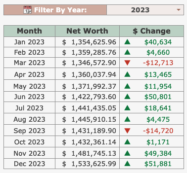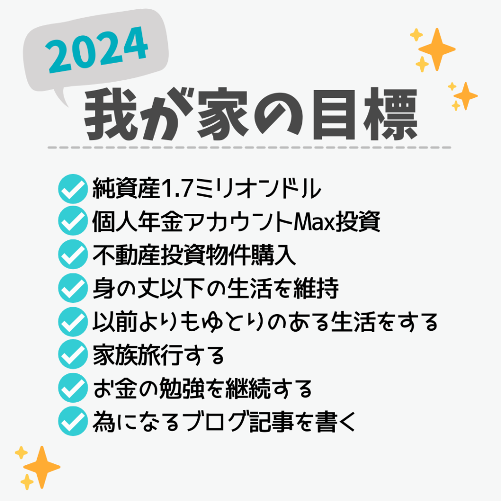 2023年の純資産の目標額は1.4ミリオンドルでしたが、なんと1.5ミリオンドルを達成できました!