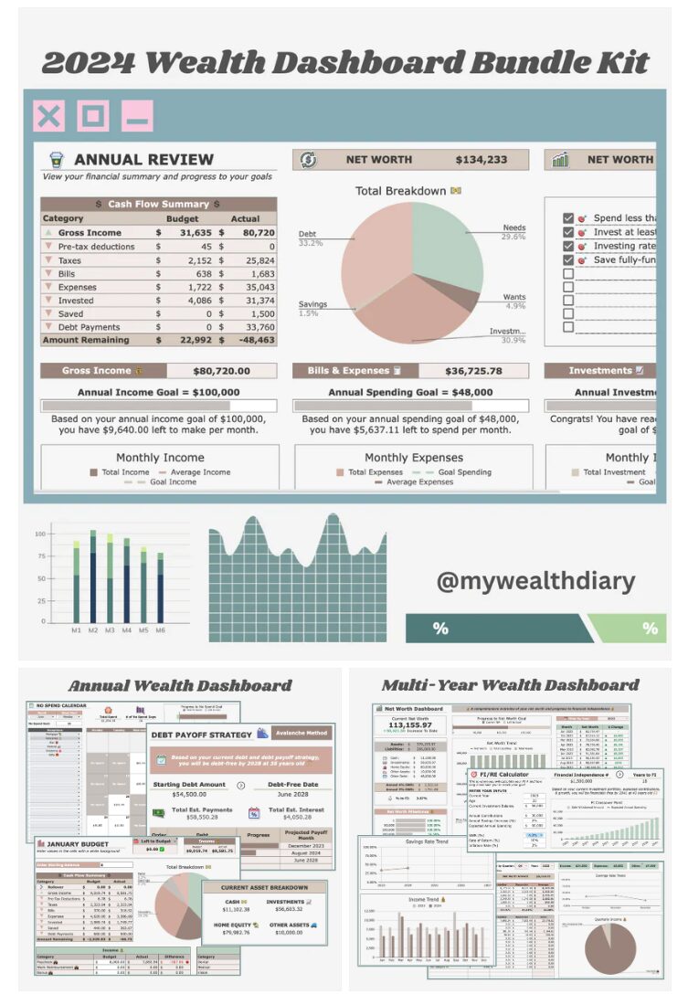 記事内の表や画像は@mywealtydiaryさんのWealth Dashboard Kitを使っています。これまでは彼女の旧バージョンのダッシュボードを日本語にカスタムして使っていましたが、新しいバージョンが出たのでその新バージョンのオリジナルのまま使っています。