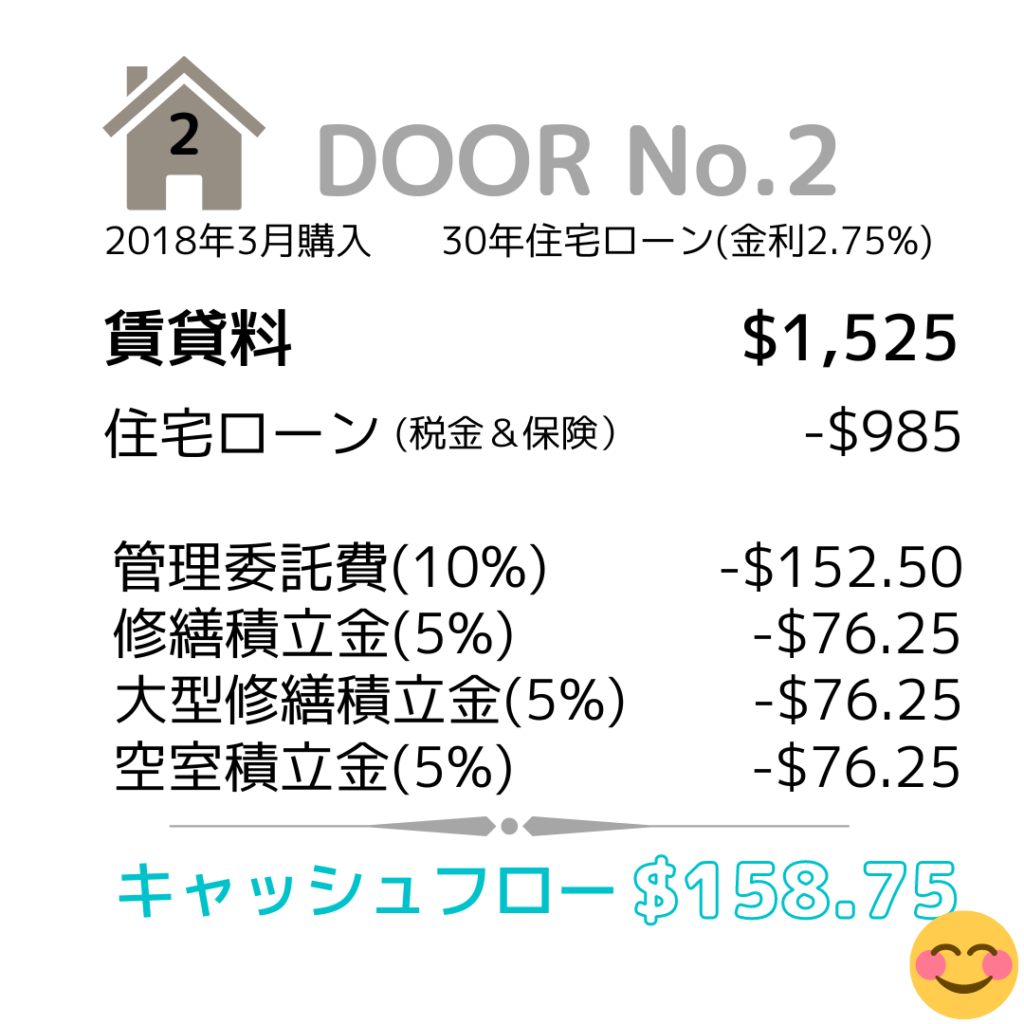 この物件はスペシャルTAXがある物件で、後4年すればこのスペシャルTAXがなくなります。そするとキャッシュフローがもう少し上がる予定です。