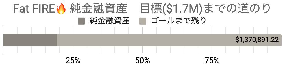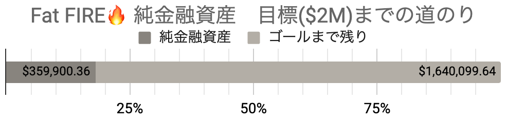 Fat FIREの純金融資産目標額が$1,956,000なので、かなり程遠い道のりです。
