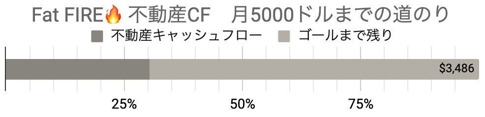 先の表にも出ましたが、不動産キャッシュフローが毎月約3480ドル。純金融資産よりもキャッシュフローの目標額の方が先に達成できそうです。