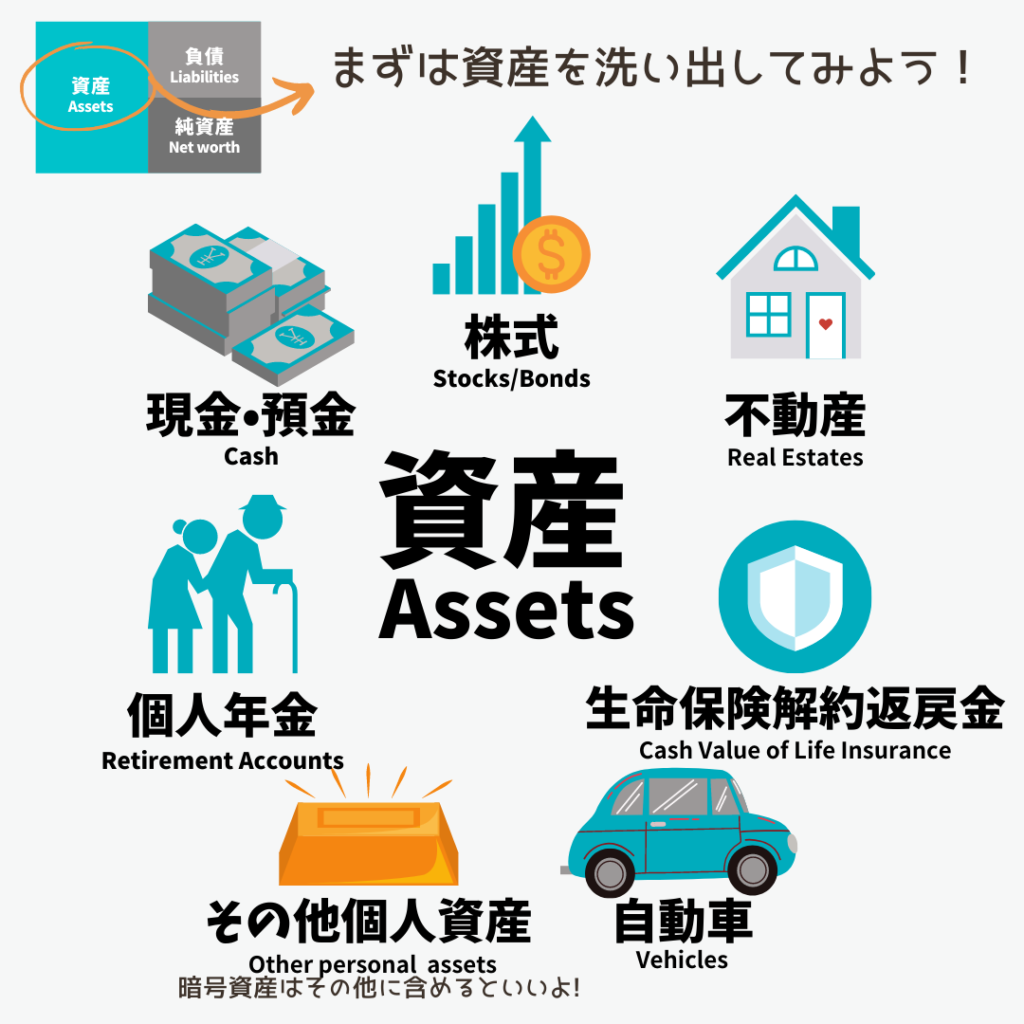 資産とはあなたの持っている全ての財産のことです。