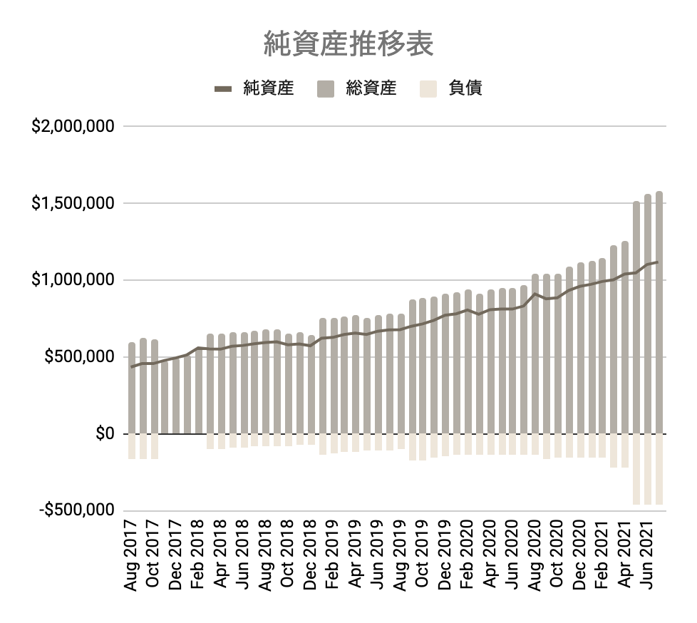 コツコツ資産形成&運用してきたことで、FIREムーブメント開始時の2017年から$684,287の純資産を増やすことが出来ています。