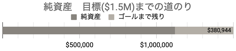 残り$380K、アパートを購入したことで賃貸収入が増えたので少し加速しました。
