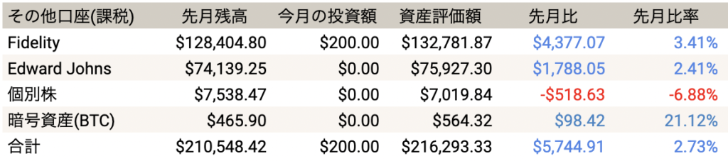 課税アカウントは合わせて5,744.91ドル(2.73%)増えました!