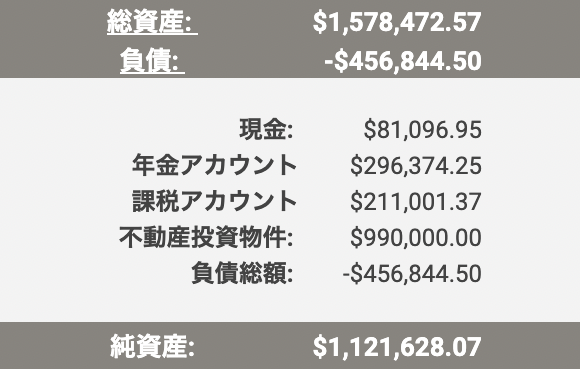 年末までに純資産が1,155,000ドルに届くのを目標に、今後もコツコツ投資頑張りたいと思います。
