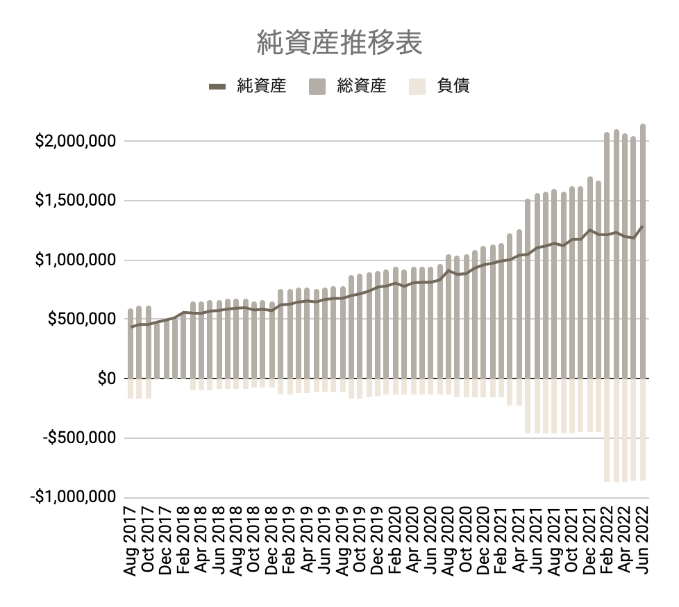 それでは2022年6月の純資産額はこちらになります。(個人資産BS基準)
