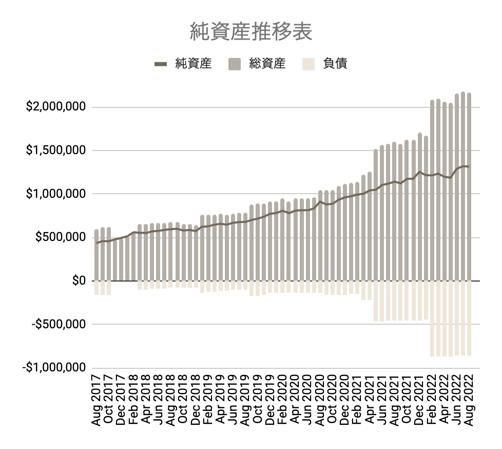 それでは2022年8月の純資産額はこちらになります。(個人資産BS基準)