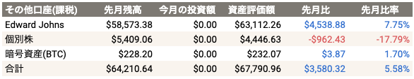 課税アカウントは先月よりも$3,580.32(5.58%)
