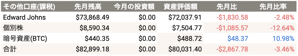 先月よりもマイナス9,457.18ドル(-2.43%)という結果になりました。
