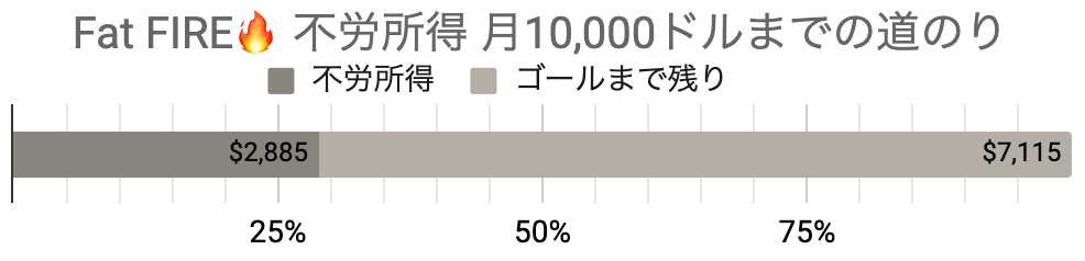 目標の純金融資資産2ミリオンドル OR 月の不労所得10,000ドルどちらか達成できればFat FIREです。