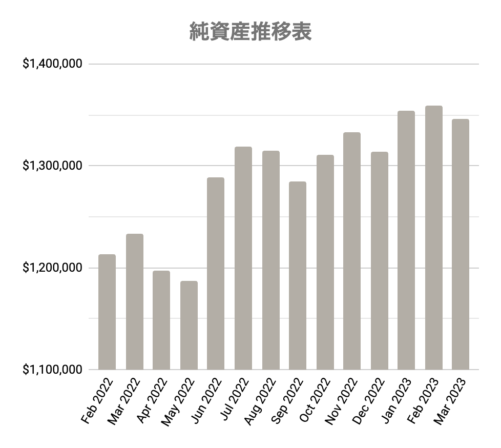 それでは2023年3月の純資産額はこちら。(個人資産BS基準)