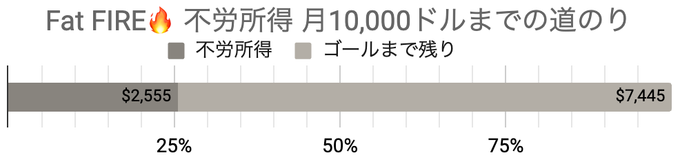 目標の純金融資産2ミリオンドル OR 月の不労所得10,000ドルどちらか達成できればFat FIREです。