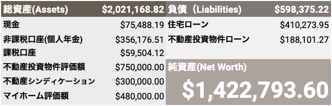 目標純金融資産額:2ミリオンドル OR Passive Income(不労所得) : 月10,000ドル