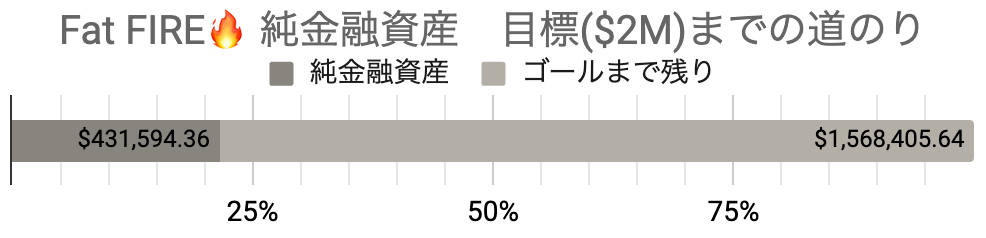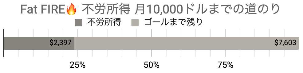 目標の純金融資資産2ミリオンドル OR 月の不労所得10,000ドルどちらか達成できればFat FIREです。