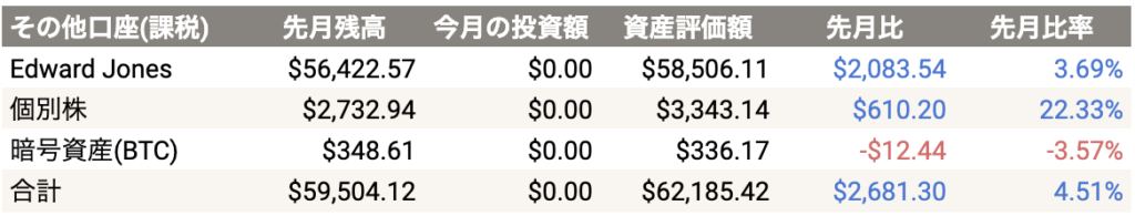 個人年金アカウントだけではなくBrokerageアカウントにも投資していますが、現在は積立を一時停止しています。また余裕ができれば積立したいです。