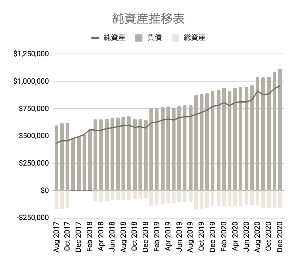 なんとこの4年間で525,782.19ドル純資産が伸びました!これには私達夫婦が一番驚いています!家計に向き合い、まじめにコツコツとインデックス投資と不動産投資をして資産形成&運用をしたら結果がついてきました。