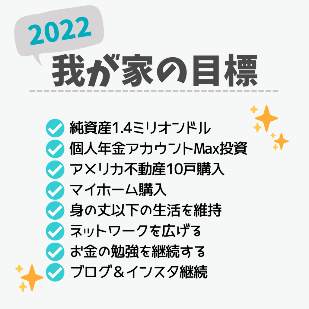 2022年はFRBによる利上げも予想されているため、達成できるかどうか全く読めませんが、目標は大きく立てておきたいと思います。