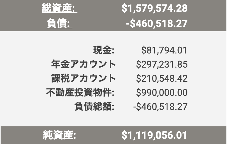 実は我が家のNet worth(純資産)1.1ミリオンドルには不動産が含まれているんです。