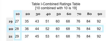 各障害のレーティングを組み合わせる際はVAが定めた組み合わせ表(Combine Ratings Table)を用います。