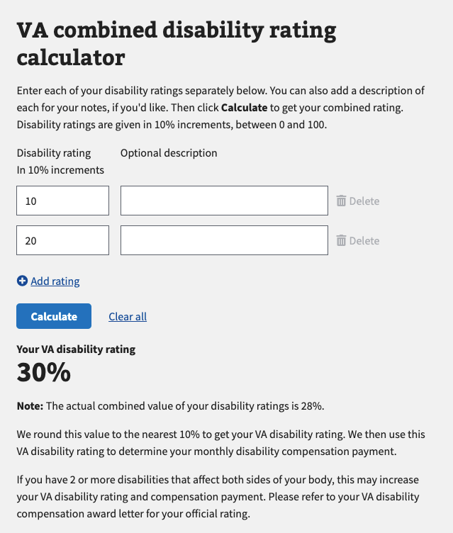 この他にもVA Disabilityを計算できる多くのサイトがありますので、参考に下にいくつか載せておきますね。